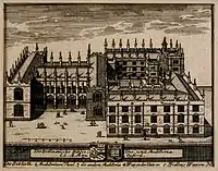 Thomas Bodley was born on 2 March 1545, in the second-to-last year of the reign of King Henry VIII, in the city of Exeter in Devon. He was one of the seven sons[3] of John Bodley (d. 15 Oct. 1591)[4] of Exeter, a Protestant merchant who chose foreign exile rather than staying in England under the Roman Catholic government of Queen Mary (r. 1553–1558). John's father, also John Bodley, was a younger son of the gentry family of Bodley of Dunscombe,[5] near Crediton[6] in Devon. Thomas's mother was Joan Hone, a daughter and co-heiress of Robert Hone of Ottery St Mary, Devon.[7] Thomas's younger brother was Sir Josias Bodley, knighted in Ireland by the Earl of Devon.[8]