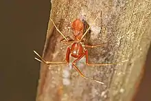 The spider family Aphantochilidae was incorporated into the Thomisidae in the late 1980s. Aphantochilus species mimic Cephalotes ants, on which they prey.
