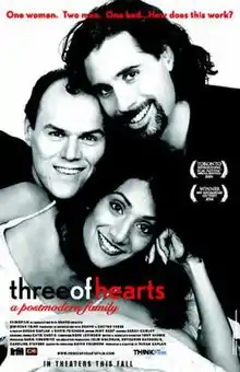 Three of Hearts: A Postmodern Family is a 2004 documentary film directed by Susan Kaplan and stars Sam Cagnina, Steven Margolin, and Samantha Singh. The film spans several years of a trinogamous relationship between two men and one woman.