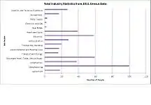 The earliest census data regarding industries and professions in Thurlaston is 1831, with agriculture being the chief industry with 53% of occupants being involved; with handcraft and manufacturing making up the remainder. However, as of 1881 a more detailed classification of resident occupation was carried out, revealing 90% of industry being directly related to agriculture, with an entirely male workforce. The only recorded work of women at the time was classed as "Domestic Services".[6] Industry in the present day has declined significantly in the agricultural area, with just 4% of the working population being involved. The prominent occupations now are the repair and trade of motor vehicles, and the manufacturing industry, which over a quarter of the entire working population is involved in.[7]