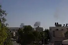 In the late afternoon, an Israeli airstrike killed three Islamic Jihad members, Mahmoud Walud, Hazm Balusha, and Alla'a Abd al-Nabi, whom Israel holds responsible for rockets fired at Tel Aviv.[128] With this strike, the total number of Palestinians killed in day three of the operation reached 33.[129] The IDF also announced that 96 rockets had been fired from Gaza on 10 July and that 442 rockets had been launched over the past three days.[130]
