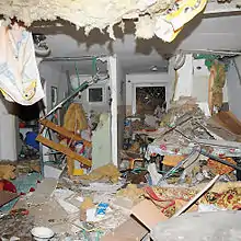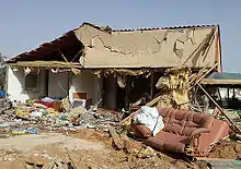 Overnight in the Northern Gaza Strip, 57 airstrikes, together with tank and gunboat fire, struck and shelled a variety of sites, destroying 10 houses and institutional offices, including a disability rehabilitation center. 77 people were wounded including 28 children and 21 women. In Gaza City, 43 airstrikes, combined with ground and sea shelling destroyed 11 houses, and hit security sites, and open land, with 11 killed and 30 wounded. In the Central Gaza Strip, 35 airstrikes demolished 9 houses, militant sites, open areas, and some charities and mosques. There were 6 fatalities and 41 wounded. In Khan Yunis, 39 airstrikes hit housing, demolishing 12 houses, open areas, a charity, and a bank. There were 9 fatalities. In Rafah 34 airstrikes targeted houses, destroying 8, and government offices and tunnels, and ground and sea artillery was all offices. There were 28 fatalities.[154] An IDF strike targeting Gaza police chief Tayseer Al-Batsah's home killed 21 people and wounded 45.[155] The police chief's Gaza City house was nearly destroyed by two rockets.[156][157] Many of those killed were leaving a mosque, next door to the home, at the time of the strike.[158]