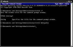 The ReactOS Command Prompt also includes the title command to set the window title for the command prompt window.