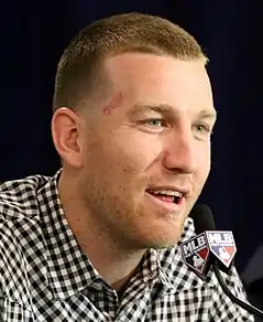 Todd Brian Frazier (born February 12, 1986), nicknamed The Toddfather, is an American professional baseball third baseman and first baseman who is a free agent. He has played in Major League Baseball (MLB) for the Cincinnati Reds, Chicago White Sox, New York Yankees, Texas Rangers and New York Mets. Frazier is 6'2", 215 lbs, and right-handed.