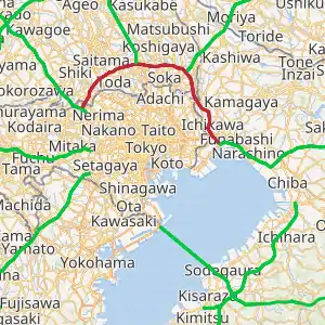 | Tokyo | Nerima | 0.0 | 0.0 | 50 | Ōizumi | Tokyo Metropolitan Route 24 (Nerima Tokorozawa Route) | Current western terminus |