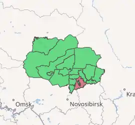 Tomsky District (Russian: То́мский райо́н) is an administrative[1] and municipal[5] district (raion), one of the sixteen in Tomsk Oblast, Russia. It is located in the southeast of the oblast. The area of the district is 10,064.2 square kilometers (3,885.8 sq mi).[2] Its administrative center is the city of Tomsk (which is not administratively a part of the district).[1] Population: 68,652 (2010 Census);[3] 85,888 (2002 Census);[7] 92,340 (1989 Census).[8]
