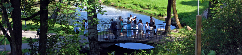 Torņakalns was an early suburb to Riga, consisting largely of gardens and mansions. In contrast to the Soviet-built Zolitūde and Ziepniekkalns suburbs, there are plenty of gardens, parks, and monuments. Mārupes parks (eng.:Mary's Creek Park) encircles the Māras dīķis (eng.:Mary's Pond), which was once dammed by a mill. The Mārupe (eng.:Mary's Creek) then continues into Arkādijas parks (eng.:Arcadian Park), where early 20th century landscaping provides an oasis from the city.[2]