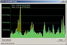 Nyx (formerly ARM) is a command-line status monitor written in Python for Tor.[89][90] This functions much like top does for system usage, providing real time statistics for: