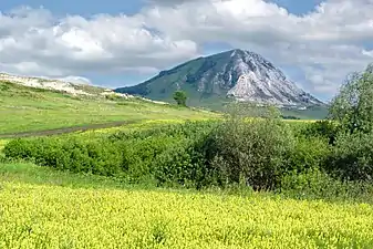 Has a conical shape. Slopes - 20-30 degrees, but do not form rocky ledges. The lower part is covered with screes. At the base of the northern slope of the mountain there are springs, one with sulphurous water.