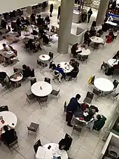 The new north food court, the Urban Eatery, features typical food court outlets, outlets of smaller Toronto-based chains, and international-style cuisine. There are 900 seats spread over more than 45,000 sq ft (4,200 m2) and 24 outlets within the Eatery.[19] Some of the more notable restaurants include KFC, McDonald's, Sbarro, Subway, and Tim Hortons.