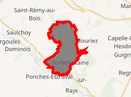 Tortefontaine lies southwest of Hesdin, on the D136 road with the Varnette, a small tributary of the Authie flowing through it.