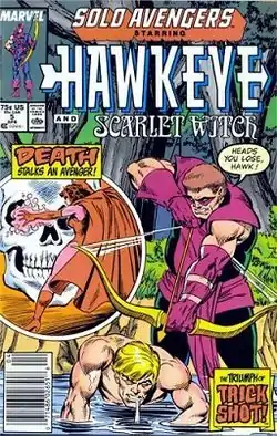 ![]() Trick Shot (right) on cover of Solo Avengers #5. Art by Mark Bright. | |