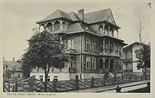 Following the collapse of the Austro-Hungarian Empire, the Polish–Ukrainian War and the Polish–Soviet War, Truskawiec became part of Poland again.[7] Administratively it was the seat of Gmina Truskawiec, located in the Drohobycz County of the Lwów Voivodeship. As the spa was not destroyed in these conflicts, activity resumed quickly, as early as 1920[7] and Truskawiec soon emerged as a popular spa destination. In the 1920s and 1930s, almost 300 hotels, villas and guest houses were built here. The town was awarded three gold medals as the country's best spa resort.[4] Next to Krynica-Zdrój, it was the most visited and most popular resort in Poland.[8] A number of notable Polish personalities visited Truskawiec during that era, including politicians (Stanisław Wojciechowski, Józef Piłsudski, Wincenty Witos, Ignacy Daszyński), artists (Eugeniusz Bodo, Adolf Dymsza, Julian Tuwim, Stanisław Ignacy Witkiewicz, Bruno Schulz, Zofia Nałkowska, Marian Hemar, Hanka Ordonówna, Jan Kiepura, Zofia Batycka, Antoni Słonimski), athletes (Stanisława Walasiewicz, Halina Konopacka, Janusz Kusociński) and Generals Stanisław Maczek and Kazimierz Sosnkowski.[8] Numerous guests from abroad came there as well.[8] In 1935, the Prime Minister and future president of Estonia Konstantin Päts visited the spa.[8] Rajmund Jarosz, who was the owner of the spa since 1911, founded the Museum of Natural History (Muzeum Przyrodnicze) and a salt-sulfur pool, later destroyed during World War II.[8]