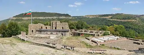 Tsarevets (Bulgarian: Царевец, romanized: Carevec) is a medieval stronghold located on a hill with the same name in Veliko Tarnovo in northern Bulgaria. Tsarevets is 206 metres (676 ft) above sea level.[1] It served as the Second Bulgarian Empire's primary fortress and strongest bulwark between 1185 and 1393, housing the royal and the patriarchal palaces, and it is also a popular tourist attraction.[2]