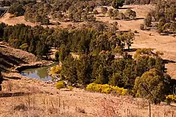 Tuggeranong Creek rises below Tuggeranong Hill, east of the suburb of Theodore and the Monaro Highway, formed through rural runoff within Monks Pond. The creek flows generally west and north-west, through Theodore, past the playing fields located in Calwell, through Richardson where it passes close to Tuggeranong Homestead, and through Isabella Plains, gathering urban stormwater drainage. Tuggeranong Creek is impounded at Bonython to form Isabella Pond, which is also impounded to form Lake Tuggeranong, a 57.1 hectares (141 acres) man-made artificial lake.[2]
