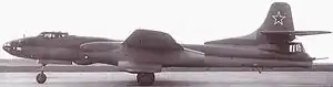 The Tupolev Tu-14 (NATO reporting name: Bosun)[2] (USAF/DOD reporting name: Type 35),[3] was a Soviet twinjet light bomber derived from the Tupolev '73', the failed competitor to the Ilyushin Il-28 'Beagle'. It was used as a torpedo bomber by the mine-torpedo regiments of Soviet Naval Aviation between 1952–59 and exported to the People's Republic of China.