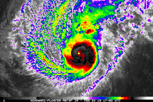 ![]() Typhoon Wutip at the second peak intensity west of the island of Guam, on February 25. | |