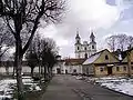 The first church in the town was built in 1555. The construction of the monastery was initiated by Andrius Valavičius and his family, who returned to the Catholic faith after a wave of Counter-Reformation. The construction plans were prepared in 1614, but the construction started only after the death of Andrius Valavičius in 1618. Works were sponsored by Jeronimas Valavičius, the treasurer of the Grand Duchy of Lithuania. In 1633 the main part of monastery and church was completed. In 1772–1780 a courtyard was built, in which Stations of the Cross were placed.