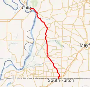 U.S. Route 51 (US 51) in Kentucky runs 42 miles (68 km) through the western portion of the state from the Tennessee state line at Fulton to the Illinois state line at Cairo, Illinois. It is a mostly rural route, also serving the towns of Clinton, Arlington, Bardwell and Wickliffe. It also carries part of the Great River Road near the northern end of its route in Kentucky.