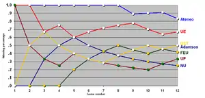4  Adamson Falcons 6 6 .500[lower-alpha 1] 4