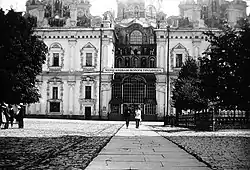 Church icons and religious architecture were destroyed.[45] The People's Commissariat for Education reduced the list of protected churches from 7000 to 1000, thus leaving 6000 churches to destruction. There were public burnings of thousands of religious icons. The built religious cultural heritage of the country was largely destroyed.[45]