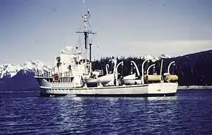 The U.S. Coast and Geodetic Survey commissioned the vessel in August 1946 as the coastal survey ship USC&GS Hodgson (CSS 26). Hodgson served on hydrographic survey duties along the United States West Coast and in Alaska until 1967, when she was decommissioned and sold.[2]