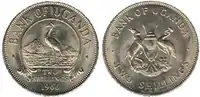 | Preceded by: First Ugandan shilling Reason: inflation Ratio: 1 new shilling = 100 old shillings |