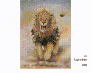 Video f: Attacking Lion, by passing this chameleon-painting its colour changes as shown, 2007, 100 x 80 cm