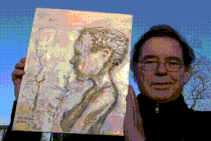 The Namibian media branded Uli Aschenborn's new style Amazing Changing Art,[5][3][6][7][8][4][9] because his new creations change – be it by themselves (video b) or because the viewer changes his position - or the painting is moved (videos a, c - i). For his chameleon-paintings,[5][3][6][9] which change color and content if the angle of view is changed, he only needs sand and paint on his canvas.[3] The changing shadow of Aschenborn's turning sculptures[5][10] show metamorphoses, e.g. the aging of a boy to an old man eventually to a skeleton (video b). The images within his Morph-Cubes (video i) distort in a grotesque way while the onlooker moves.[5][10][11][12] Because movement is an integral part of these art works they are Kinetic Art.