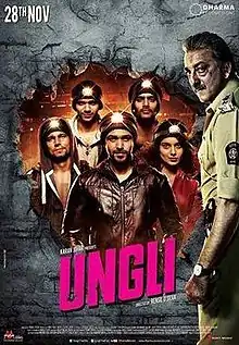 Ungli (transl. Finger) is a 2014 Indian vigilante thriller film directed by Rensil D'Silva and produced by Hiroo Yash Johar and Karan Johar under Dharma Productions. The film stars Emraan Hashmi, Randeep Hooda, Kangana Ranaut, Neha Dhupia, Angad Bedi, Neil Bhoopalam and Sanjay Dutt.[3] Mahesh Manjrekar, who collaborated with Dharma Productions for the first time, appears in a negative role. The film was released on 28 November 2014.
