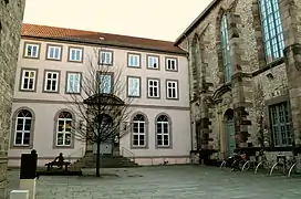 Initially, the only new buildings constructed for the opening of the university were a riding hall and a fencing house, while courses were taught in the Paulinerkirche and associated Dominican monastery, or in the homes of professors. No university auditorium was built until well into the 19th century.