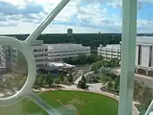 The original design of Regina Campus (as of Wascana Centre itself) and its initial buildings, in a stark concrete modernist style, were by Minoru Yamasaki, the architect of the original World Trade Center in New York.[18]