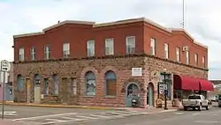 1907 | Only Art Deco style building in Historic District[1] | Originally five smaller buildings combined and covered with stucco; housed grocery, hardware, department stores and bakery[2] |