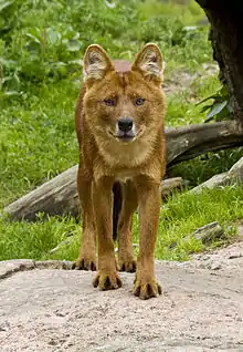 The Ussuri dhole[2] (Cuon alpinus alpinus), also known as the Indian dhole, Eastern Asiatic dhole, Chinese dhole or Southern dhole, is the nominate subspecies of the dhole native to East Asia. It is widespread in the Indian subcontinent and the Indochinese Peninsula. The Ussuri dhole is also native to China, however it is probably extinct in most of its ranges in China, as well as in Mongolia and the Russian Far East.[3]