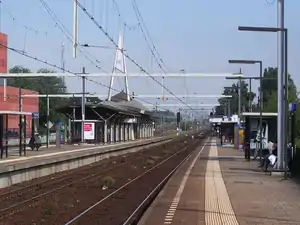Utrecht Overvecht is a railway station located in Overvecht, Utrecht, Netherlands. The station opened in 1968 and is on the Utrecht–Kampen railway. The station has had 3 platforms since 1992. It also has a kids' slide to the outside street for use by the busy passengers.