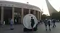 The original circular vestibule is located on the west side of Prospekt Mira, in front of the Space Obelisk.