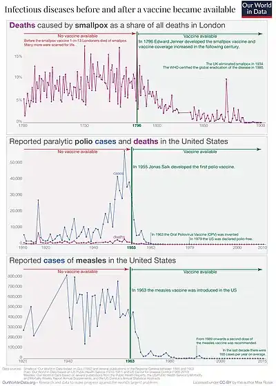 - Roser, Max; Vanderslott, Samantha (2013-05-10). "Vaccination". Our World in Data.