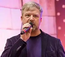 Valdis Pelšs (Russian: Валдис Пельш; born 5 June 1967 in Riga) is a TEFI-awarded Soviet and Russian television presenter, television director, television producer and musician of Latvian descent and Zolotoi Grammofon-awarded musical artist. Valdis Pelšs currently works as a screen actor and manages child programs subdivision on Channel One. He hosted several popular game shows, such as Ugadai Melodiu, Russian Roulette and Rozygrysh.[1][2] Pelšs is a former vocalist and percussion instrument player in Neschastny Sluchai band, which was founded by him and Alexei Kortnev in 1983.[3][4]
