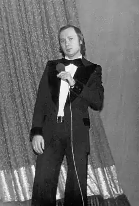 Valery Vladimirovich Obodzinsky (Russian: Вале́рий Влади́мирович Ободзи́нский; 24 January 1942 – 26 April 1997) was a Soviet and Russian singer (tenor), a holder of the title of Meritorious Artist Mari Autonomous Soviet Socialist Republic (1973).[1] He gained wide popularity all over the Soviet Union when in 1964 Oleg Lundstrem invited the popular provincial singer to work as a soloist with his Moscow-based orchestra. A year and a half later, having recorded a number of big hits, Obodzinsky decided to split and continue his career independently. In the 1970s, in part because he only performed lyrical songs and his repertoire was therefore limited, he started experiencing an artistic crisis. He periodically fell into depression and eventually abandoned the stage for over 10 years.[2]