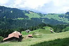 Valzeina is a Swiss village in the Prättigau and a former municipality in the political district of Prättigau/Davos in the canton of Graubünden. On 1 January 2011 Fanas and Valzeina were merged with the municipality of Grüsch.