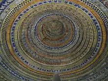 The jagamohana and antarala have modern paintings with floral and animal or bird motifs. The jagamohana has a Garuda pillar. In the jagamohana, the sculptural images of dvarapala (gate keepers) of the Shaiva (related to the god Shiva) tradition, the head of Brahma and Astikajaratkaru (the goddess Manasa cradles her child Astika or a dead man who is revived) fixed to the walls. The niches in the talajangha of the jagamohana has images of the predominantly Buddhist deity Prajnaparamita, Vishnu, Kalyanasundara (marriage scene of Shiva and Parvati), Narasimha (avatar of Vishnu), Ganga (the goddess of the Ganges), Varaha, Parvati (consort of Shiva), Giridhari Govardhana (a form of Krishna - avatar of Vishnu) and dancing panels. The brackets supporting the gandi (temple pinnacle) have erotic sculptures of male and female figures and figurines of bharabahaka (goblins supporting the roof) and mother and child.[1]
