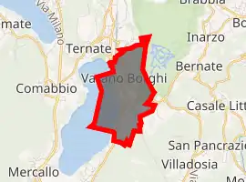Varano Borghi is a comune (municipality) in the Province of Varese in the Italian region Lombardy, located about 50 kilometres (31 mi) northwest of Milan and about 12 kilometres (7.5 mi) southwest of Varese. As of 31 December 2004, it had a population of 2,242 and an area of 3.3 square kilometres (1.3 sq mi).[3]