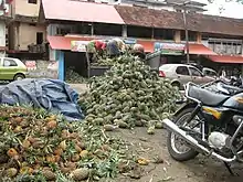 Vazhakulam lies east of the town of Muvattupuzha in Ernakulam district on the Muvattupuzha - Thodupuzha road in Kerala, India. This town is famously known as Pineapple City[1] due to large-scale cultivation of pineapple. The town is the largest Asian pineapple market. Kerala Agricultural University established a Pineapple Research Station at Vazhakulam in 1995 to give research support to pineapple farmers. The pineapples cultivated in Vazhakulam has been credited with geographic indication. Today Vazhakulam pineapples are marketed as GI tagged products. Vazhakulam is part of Muvattupuzha Taluk Rice used to be the main crop of this area in the 1960s and 1970s, but the advent of rubber cultivation saw many rice fields and estates being turned into rubber plantations.