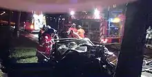 - the protection of the incident scene, to avoid a risk of another collision (marking out the scene with cones or flares (inadvisable if gasoline is leaking), lighting) and of fire (e.g. switching off the ignition, putting vehicle in park, disconnecting the battery, placing absorbing powder on oil and gasoline pools, fire extinguisher and fire hose ready to use); It is very common to use emergency vehicles as road blockers at crash scenes.