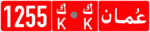 There are several type of plates in Oman: (Private / Taxi / Commercial / learn driving/ government / political body / Authority Consulate / UN / Tractor / Bicycle mechanism / export / checking / rental)