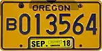 Blue on gold; "OREGON" at top and "PUBLICLY OWNED" at bottom | E226001 to present | ||||
