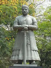 Bala Rama Varma was one of Travancore's least popular sovereigns whose reign was marked by unrest and various internal and external political problems.[4] He became rajah at the age of sixteen and fell under the influence of the corrupt nobleman Jayanthan Sankaran Nampoothiri from the Zamorin of Calicut's kingdom. One of the first atrocities of his reign was the murder of Raja Kesavadas,[5] the then Dewan of Travancore. Sankaran Nampoothiri was subsequently appointed Dewan or Prime Minister assisted by two other ministers. The state treasury was soon empty due to corruption so it was decided to collect money by ordering the tahsildars (district officers) to pay large amounts of money which were determined without any reference to the revenue of the districts. Velu Thampi, the Tahasildar(Karyakar) of a southern district, was ordered to pay Rs. 3000 to which he responded that he needed three days to pay. Velu Thampi returned to his district, gathered the people and an uprising ensued. People from all parts of Travancore united to surround the palace and demand the immediate dismissal and banishment of Jayanthan Sankaran Nampoothiri. They also demanded that his two ministers (Matthoo Tharakan,Sankaranarayanan chetty) be brought to a public place then undergo flogging and have their ears cut off. The punishments were duly carried out and the two ministers were put in jail at Trivandrum. Velu Thampi was later appointed the Dalawa of Travancore.[6]