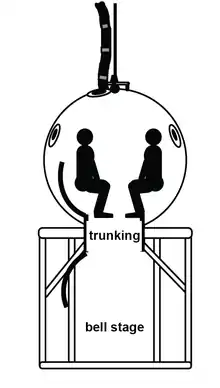 A few minutes later, while Hammond was working on the guide base wire, Pettit suddenly heard a “strange high-pitched electrical noise” in his headset. He immediately called the bell to see if Hoffman was okay, but received no response. Hammond was nearly finished cutting the third wire when Pettit ordered him back to the bell. Hammond answered that he “had one strand of wire left to cut through”, but Pettit ordered him to return immediately.[13] Hammond dropped his tools and began swimming back to the bell.[14] Roughly six feet from the bell he found Hoffman floating in a “dead-man’s position” inside the trunking with his arms and legs extending down in the water.[15] Hammond tried to push his unconscious partner inside; unable to do so, he pulled Hoffman away from the hatch, and crawled through the trunking into the bell.[16] Sitting on one of the seats, he drew Hoffman's body part way into the bell, positioned his arms over his knees and began ventilating him, giving mouth-to-mouth resuscitation.”[17]