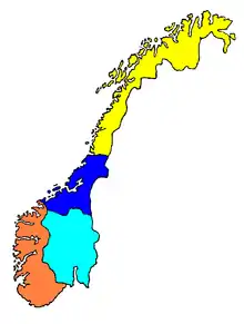 Vestlandsk or Vestlandske dialekter (West Norwegian) is a collective term for the dialects that are spoken on the coast of western Norway in the area ranging from Romsdal in the north to Agder in the south. These dialects can furthermore be split into north-western dialects (Nordvestlandske dialekter), south-western dialects (Sørvestlandske dialekter) and southern dialects (Sørlandske dialekter).[1]