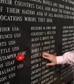 Every Memorial Day since the monument was completed, a group of family, friends and classmates of Navy pilot Scott Speicher gather at the wall. Speicher, who grew up in Jacksonville, was shot down on the first night of Operation Desert Storm in 1991. His remains went unrecovered until August 2, 2009.[3]